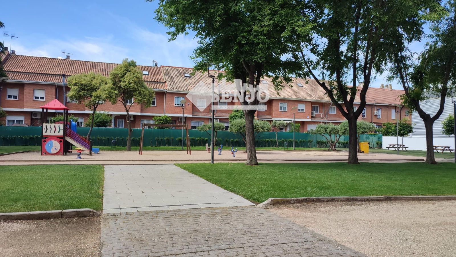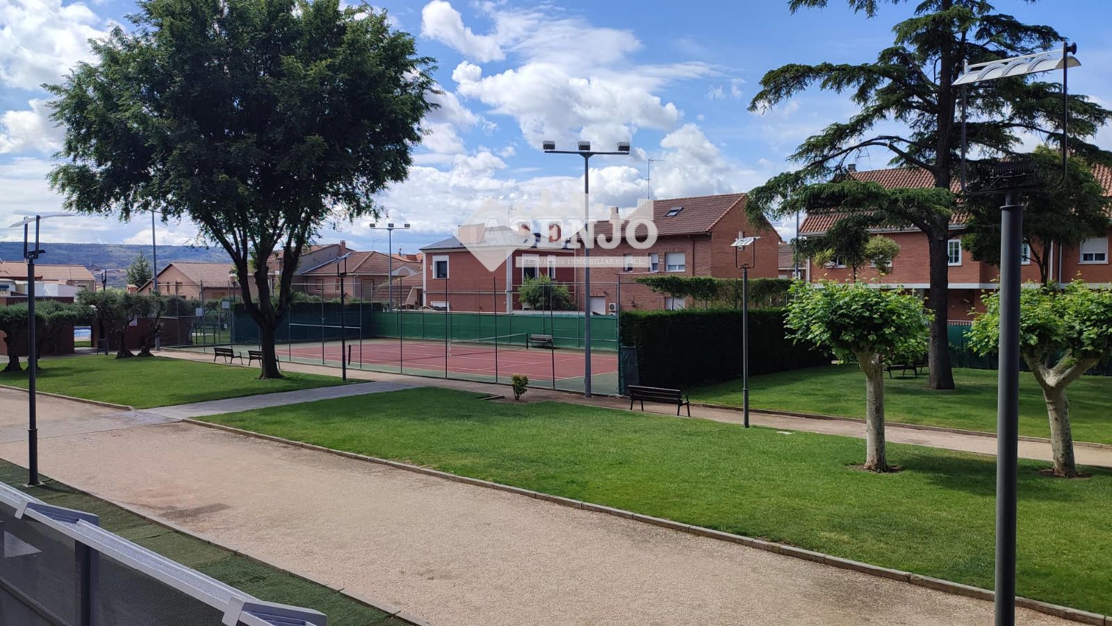 Cuenta con zonas comunes, con parque infantil, piscina, pista de tenis y zonas ajardinadas.